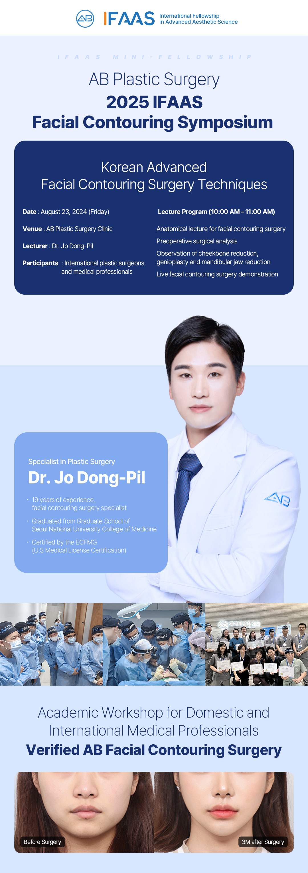 Seiring meningkatnya minat, AB Plastic Surgery akan terus berkomitmen untuk memberikan pendidikan facial contouring berkualitas tinggi melalui IFAAS—terus bertukar ide baru, membimbing tren bedah global, dan mengambil peran terdepan dalam memajukan bidang kedokteran estetika.