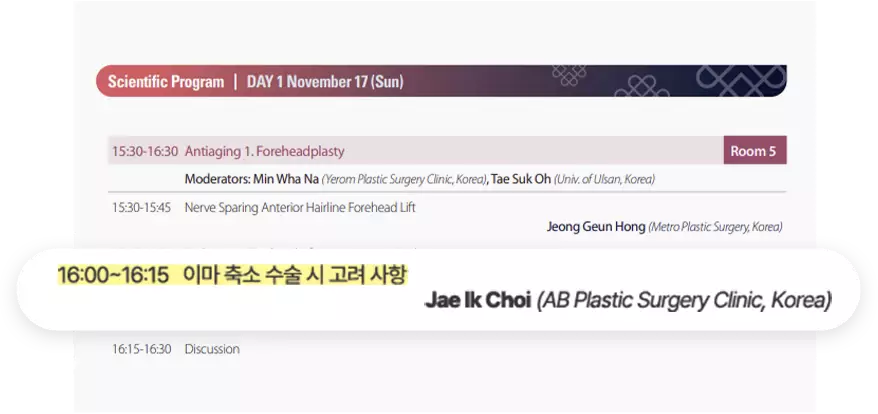 Pada kongres tahun ini, tim medis AB Plastic Surgery memaparkan wawasan ahli tentang bedah pengurangan dahi dan blepharoplasty atas untuk pasien Asia berusia pertengahan.