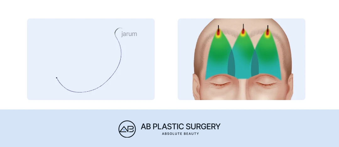 Metode ini meminimalkan rasa tidak nyaman akibat benda asing dan risiko terlepasnya area fiksasi juga rendah. Selain itu, melalui fiksasi 3 poin, area dahi dan glabella dapat diangkat secara bersamaan, sehingga kekenduran pada area wajah bagian atas dapat diperbaiki secara lebih detail dan presisi. Namun, karena teknik bone tunneling ini sangat bergantung pada pembentukan terowongan yang akurat serta penentuan titik fiksasi yang tepat, prosedur lifting dahi endoskopik ini merupakan prosedur dengan kesulitan tingkat tinggi yang menuntut keterampilan bedah yang matang serta pemahaman anatomi yang mendalam.