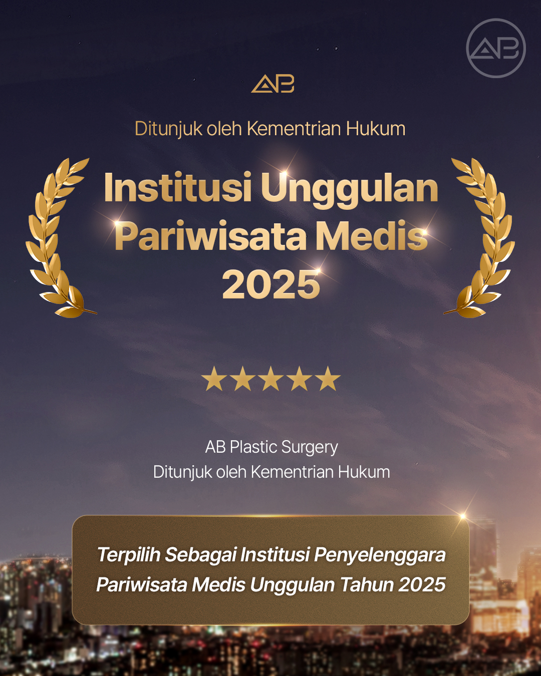 AB Plastic Surgery terpilih sebagai Institusi Unggulan Pariwisata Medis 2025
