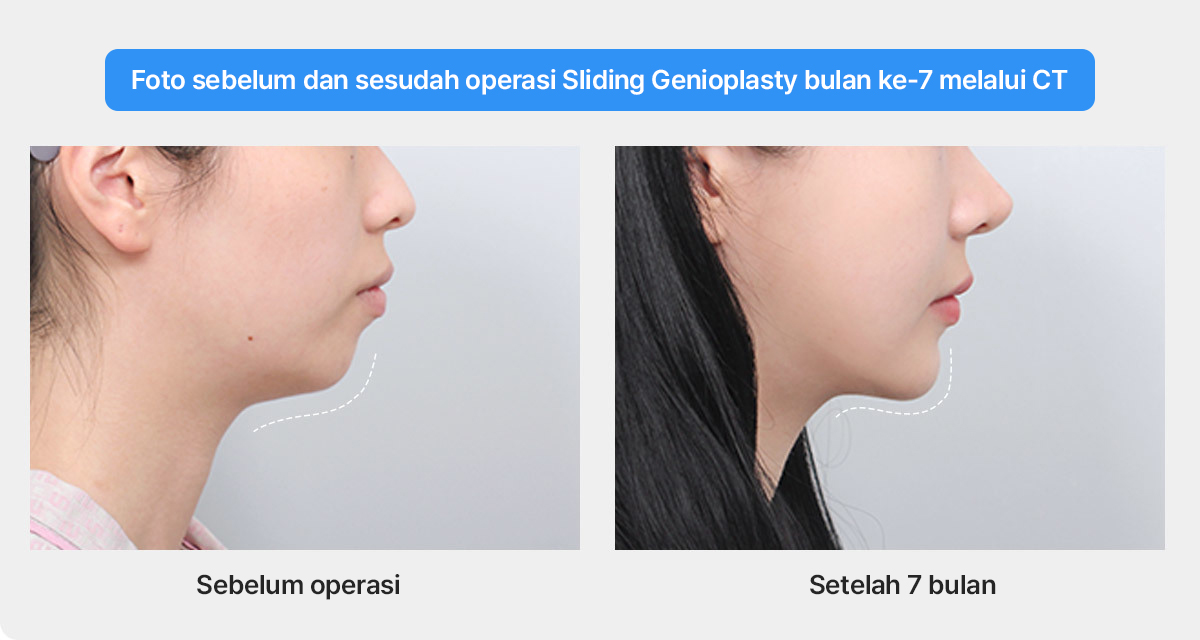 Untuk memperbaiki banyak efek kompensasi yang disebabkan oleh dagu pendek, lebih baik memperbaikinya melalui operasi Sliding Genioplasty daripada menggunakan implan dagu. Operasi Sliding Genioplasty, yaitu operasi untuk memotong tulang rahang depan dan menggerakkannya ke depan, mungkin terasa memberatkan, namun jika dagunya besar dan kasusnya parah, ini jauh lebih alami dan efektif dibandingkan implan dagu. Karena tidak ada implan yang dipasang, keuntungannya adalah sensasi benda asing berkurang dan risiko infeksi akibat implan juga lebih kecil. Selain itu, saat tulang di ujung dagu dipotong dan dimajukan ke depan, otot-otot yang menempel pada tulang rahang juga ikut tergerak, sehingga masalah double-chin bisa membaik secara alami.