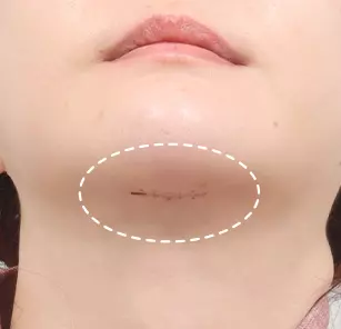 Submentoplasty dilakukan melalui sayatan kecil yang tersembunyi di bawah dagu, sehingga bekas luka tidak terlihat dari tampak depan.Bekas Luka yang Tidak Terlihat dari Tampak Depan