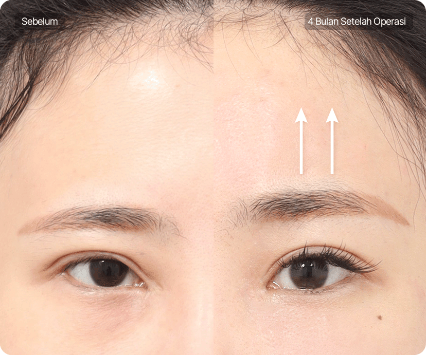 Memperbaiki lipatan mata yang kendur parah dengan menyesuaikan posisi dan sudut dahi dan alis yang kendur.