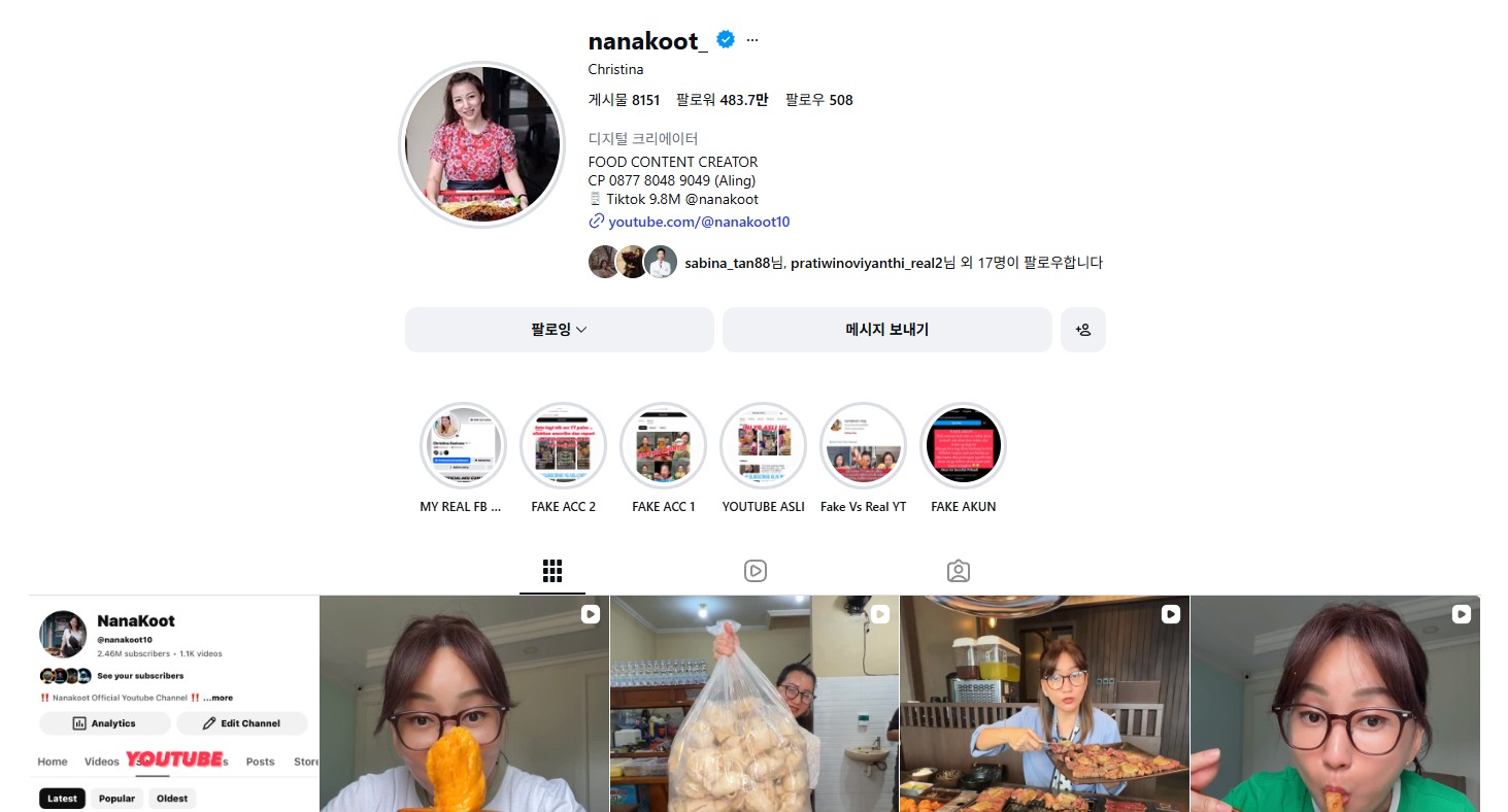 - Followers : 4.8M+ (Instagram) / 9.8M+ (TikTok) / Youtube 2.5M+
