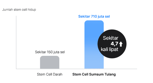 Untuk merasakan efek dari suntikan stem cell, jumlah sel hidup sangatlah penting. Stem cell sumsum tulang dapat menghasilkan sekitar 4–5 kali lebih banyak sel hidupdibandingkan stem cell yang berasal dari darah ketika diekstraksi dalam kondisi yang sama sehingga anda dapat mengharapkan efek regenerasi jaringan yang lebih cepat dan lebih efisien.